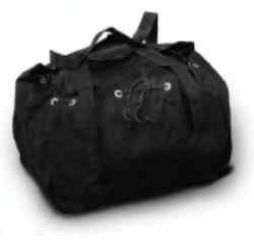 kastenförmig konfektionierte Tasche aus schwarzem Kohtenstoff Qualität 128. Boden ca. 48 x 40cm, Höhe ca. 33cm. Zwei stabile PP-Tragegurte. Innenliegende Abdeckklappe, Saum mit Messingösen und Zugkordel. Geeignet zum Verpacken von vier Kohtenblättern und einer Kohtenabdeckplane.