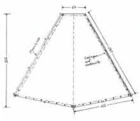 . Eine Kohte besteht aus vier Kohtenblättern. Jedes Blatt an einer Längsseite mit Schlingen, an der anderen Seite mit Ösen versehen. Mit Regenleiste (Deckleiste) und Knebelverschlüssen versehen. Qualität 285 g/qm.